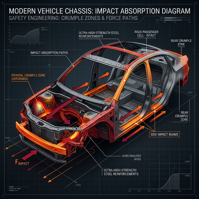Modern vehicles use carefully designed structures that redirect crash energy away from passengers. These structures include reinforced sections of the frame as well as areas designed to deform in a controlled way. Key components that help manage collision forces include:
